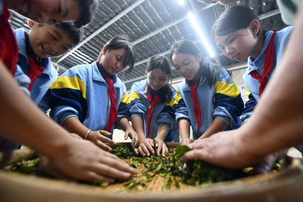 2024年12月3日,學(xué)生們在廣西梧州市蒼梧縣六堡鎮(zhèn)塘平小學(xué)學(xué)習(xí)制作六堡茶。廣西六堡茶已有1500多年的歷史,其制作工藝被列入第四批國家級非物質(zhì)文化遺產(chǎn)代表性項目名錄。近年來,廣西圍繞打造千億元茶產(chǎn)業(yè)發(fā)展目標(biāo),深入實施綠色高效茶園建設(shè)、品牌提升和營銷體系建設(shè)、產(chǎn)業(yè)融合和茶文化提升等多項工程,形成了以六堡茶為引擎,早春茶等特色優(yōu)勢茶協(xié)同發(fā)展的產(chǎn)業(yè)格局,茶產(chǎn)業(yè)煥發(fā)勃勃生機。六堡茶正沿21世紀(jì)海上絲綢之路運達(dá)八方,香飄海內(nèi)外。2024年,廣西六堡茶產(chǎn)量達(dá)到4.3萬噸,綜合產(chǎn)值超300億元。