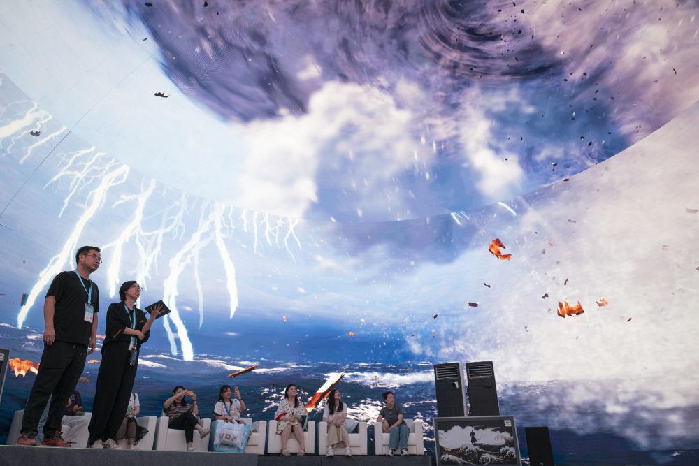 2025年9月12日,觀眾在2025中國文化旅游產(chǎn)業(yè)博覽會上參觀多業(yè)態(tài)文旅球幕。當(dāng)日,2025中國文化旅游產(chǎn)業(yè)博覽會在武漢開幕,本次博覽會以“深化文旅融合 暢享美好生活”為主題,融合“展、演、銷、游”四大功能。室外展區(qū)展示以“河山添錦繡”為主題的文旅IP花車矩陣,室內(nèi)展館集中展現(xiàn)文旅新業(yè)態(tài)、新場景、新產(chǎn)品,涵蓋數(shù)字集群、智能導(dǎo)覽、低空文旅、非遺文創(chuàng)等方面,吸引了國內(nèi)2000余家展商以及50家海外旅行商參展。