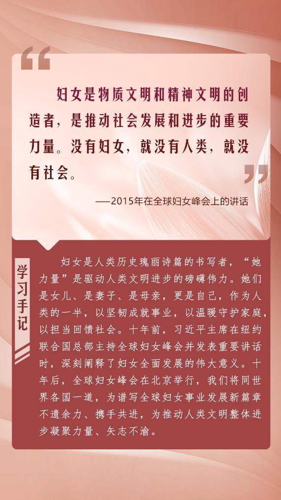 在全球婦女峰會即將舉行之際,我們重溫習(xí)近平總書記的重要論述,共同展望婦女發(fā)展的美好未來,期待全球婦女事業(yè)發(fā)展譜寫新的絢爛篇章。