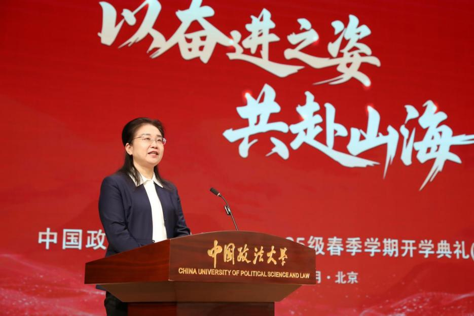 黨委常委、副校長劉艷紅在開學(xué)典禮上致辭。她強(qiáng)調(diào),中國政法大學(xué)作為新中國法學(xué)教育的最高學(xué)府,始終秉承“厚德、明法、格物、致公”的校訓(xùn)精神,致力于培養(yǎng)兼具理性與人文情懷的法治人才。此次法學(xué)與心理學(xué)專業(yè)新學(xué)員的加入,正是對習(xí)近平總書記“立德樹人、德法兼修,培養(yǎng)大批高素質(zhì)法治人才”要求的踐行。她指出:“法學(xué)與心理學(xué)的交融,是理性與感性的對話。法學(xué)人守護(hù)外化于行的規(guī)則,心理學(xué)人照見內(nèi)化于心的脈絡(luò)。愿學(xué)員們以今日之勤學(xué)回應(yīng)時代叩問,以明日之實(shí)踐共赴山海壯闊?!?/p>