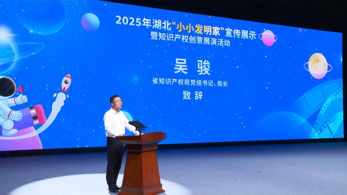 活動在武漢市光谷第二十一小學(xué)樂隊和機器人共同帶來的開場秀《閃耀明天》中拉開帷幕。湖北省知識產(chǎn)權(quán)局局長吳駿致辭表示,此次活動旨在為全省熱愛科學(xué)、勇于創(chuàng)新的青少年們搭建一個激發(fā)靈感、展示才華、交流互鑒的廣闊平臺,讓創(chuàng)新的種子在幼小的心靈中生根發(fā)芽,讓知識產(chǎn)權(quán)的理念在青春的土壤里茁壯成長。他親切寄語“小小發(fā)明家”,永葆好奇之心,敢于提問,善于思考,勤于動手,將天馬行空的想象變成創(chuàng)新創(chuàng)造的作品;初識知識產(chǎn)權(quán),了解它、尊重它、運用它,學(xué)會保護創(chuàng)意,尊重發(fā)明創(chuàng)造;同時志存高遠,將今天的興趣發(fā)展成為明天的志向,努力成長為科技自立自強的棟梁之材。