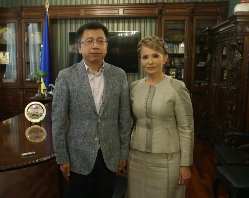 圖為烏克蘭前總理季莫申科與法制網(wǎng)駐烏克蘭記者楊軍合影。