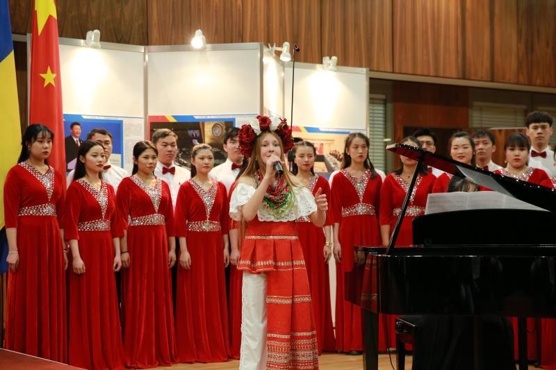 招待會(huì)在中國(guó)留學(xué)生藝術(shù)團(tuán)合唱隊(duì)用中烏雙語(yǔ)演唱的兩國(guó)國(guó)歌聲中拉開(kāi)帷幕,現(xiàn)場(chǎng)觀眾對(duì)此報(bào)以熱烈掌聲,從一開(kāi)始就把招待會(huì)氣氛推向了高潮。