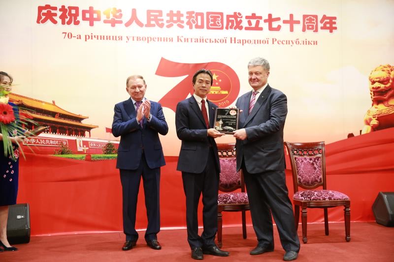 為表彰和鼓勵(lì)長(zhǎng)期以來(lái)為中烏關(guān)系發(fā)展作出重要貢獻(xiàn)的烏各界友好人士,杜偉在招待會(huì)上代表駐烏使館向?yàn)蹩颂m前總統(tǒng)庫(kù)奇馬、波羅申科等頒發(fā)了“中國(guó)—烏克蘭友誼獎(jiǎng)?wù)隆?。隨后,庫(kù)奇馬、波羅申科分別接受央視采訪,向中華人民共和國(guó)成立70周年華誕致以誠(chéng)摯祝賀,盛贊70年來(lái)中國(guó)經(jīng)濟(jì)社會(huì)發(fā)展取得的巨大成就。庫(kù)奇馬說(shuō),“中國(guó)70年來(lái)走過(guò)的道路值得我們致以最崇高的敬意,中國(guó)的經(jīng)濟(jì)、科技發(fā)展成就舉世矚目,烏克蘭應(yīng)不斷向中國(guó)學(xué)習(xí)?!辈?span style="text-indent: 32px;">羅申科則愉快地回憶起同習(xí)近平主席在達(dá)沃斯的會(huì)晤,稱(chēng)那次交流為雙邊關(guān)系的發(fā)展提供了強(qiáng)勁動(dòng)力,表示對(duì)烏中關(guān)系的前景充滿(mǎn)信心。