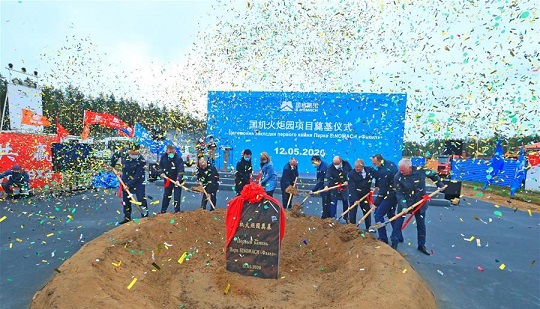 5月12日,在白俄羅斯首都明斯克郊區(qū)的中白工業(yè)園,中白雙方代表參加國機(jī)火炬園項(xiàng)目奠基儀式。 新華社發(fā)(任科夫攝)