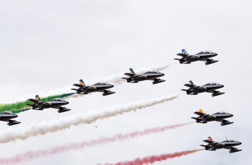 6月2日,意大利“三色箭”飛行表演隊(duì)在羅馬舉行的共和國日慶祝儀式上表演。