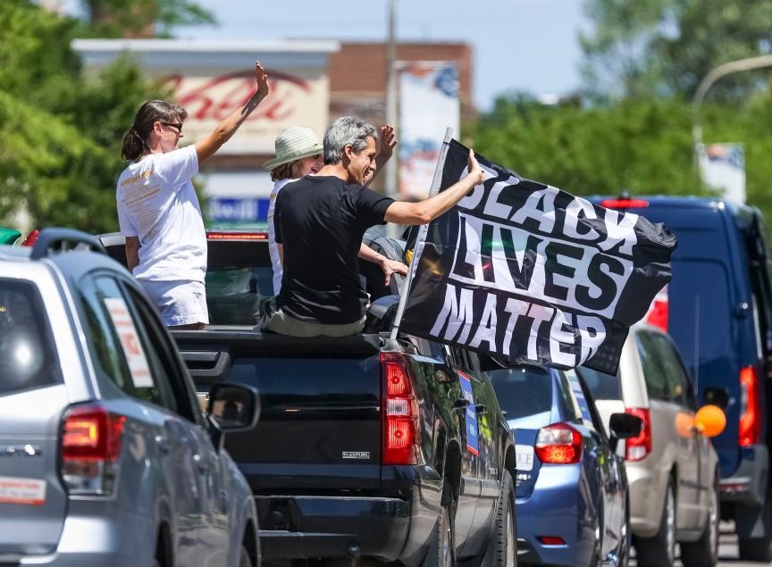 6月19日,民眾在美國(guó)伊利諾伊州埃文斯頓參加六月節(jié)慶祝活動(dòng)。新華社發(fā)(喬爾·萊納攝)