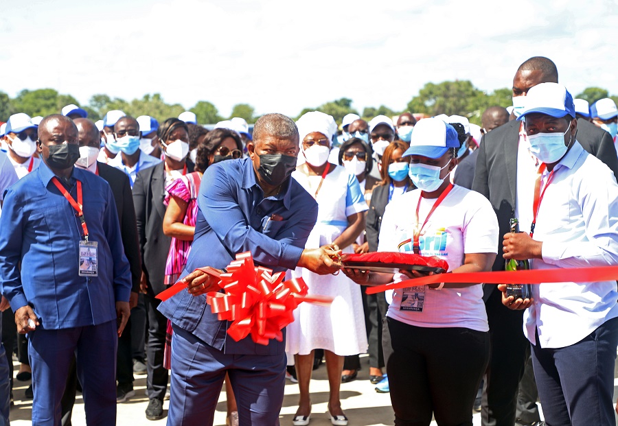 4月4日,安哥拉總統(tǒng)洛倫索在庫內(nèi)內(nèi)省參加剪彩儀式。