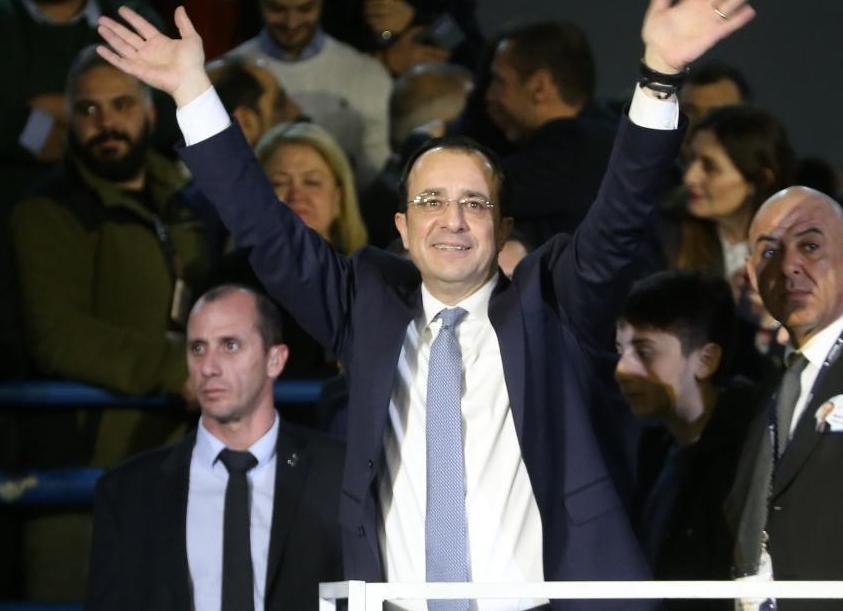 圖為2月12日,在塞浦路斯首都尼科西亞,當(dāng)選總統(tǒng)赫里斯托祖利季斯向支持者揮手致意。新華社發(fā)(喬治·克里斯托弗魯攝)