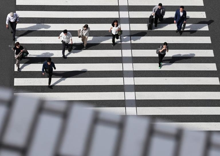 5月15日,在日本東京,行人通過(guò)東京站附近的一處人行橫道。新華社記者賈浩成攝