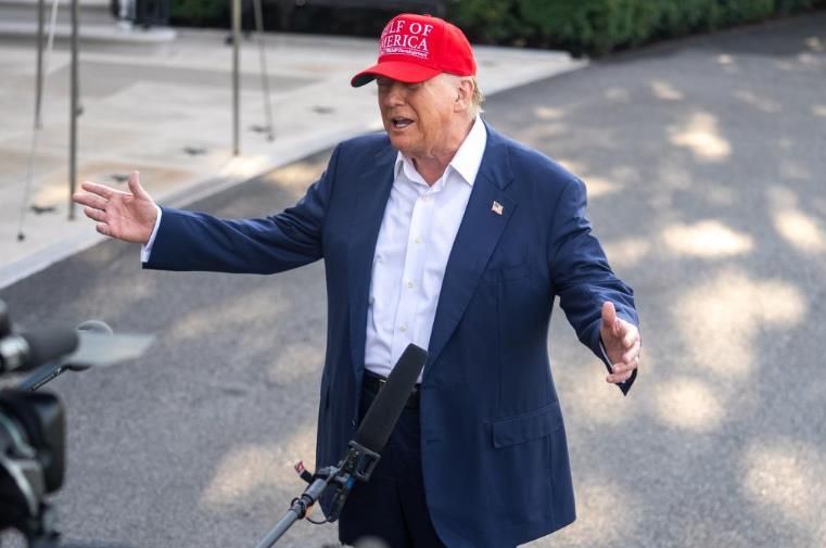 7月1日,在美國(guó)首都華盛頓白宮,美國(guó)總統(tǒng)特朗普在登機(jī)前回答記者提問(wèn)。新華社記者胡友松攝