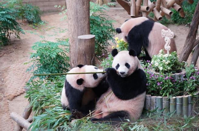 愛(ài)寶樂(lè)園為雙胞胎大熊貓準(zhǔn)備了用竹子制成的大型生日蛋糕,生日禮物則包括清涼的冰床和各類(lèi)用竹子制成的“豐容”玩具等。據(jù)愛(ài)寶樂(lè)園方面介紹,雙胞胎出生時(shí)體重分別只有180克和140克,如今體重都已接近70公斤。