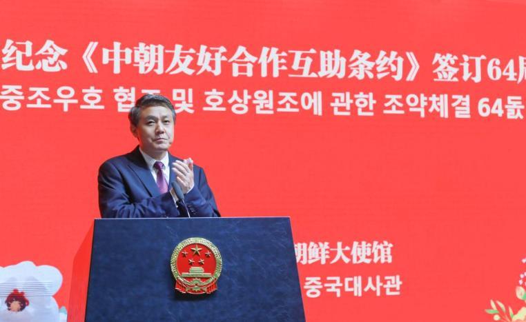 7月9日,在朝鮮首都平壤,中國駐朝鮮大使王亞軍在紀念《中朝友好合作互助條約》簽訂64周年招待會上致辭。
