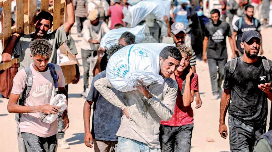 8月5日,在加沙地帶拜特拉希耶,人們搬運(yùn)援助物資。 新華社發(fā) 里澤克·阿卜杜勒賈瓦德 攝