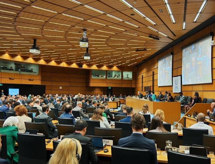 9月10日在奧地利維也納拍攝的國際原子能機構理事會會議現場。新華社發(fā)(中國常駐維也納聯合國代表團供圖)