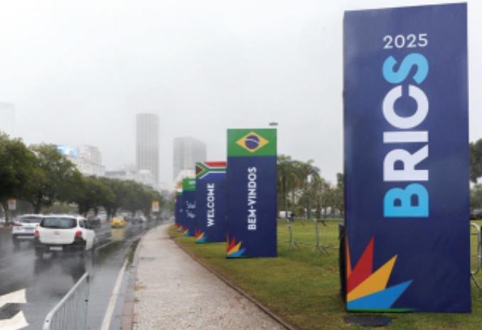 圖為7月3日在巴西里約熱內(nèi)盧拍攝的金磚國家領(lǐng)導(dǎo)人第十七次會晤歡迎標(biāo)語牌。 新華社發(fā)