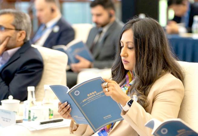 圖為9月7日,與會代表在2025全球南方媒體智庫高端論壇上閱讀《思想殖民——美國認知戰(zhàn)的手段、根源及國際危害》智庫報告。 新華社記者 高詠薇 攝