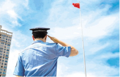 圖為在6月26日國(guó)際禁毒日,郭朝偉向國(guó)旗敬禮。 許鵬昊 攝