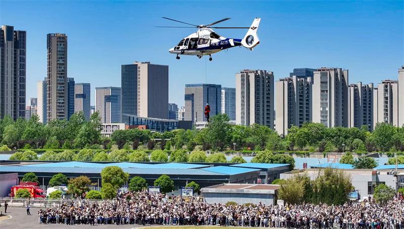 南京公安警營開放活動現(xiàn)場直升機索降表演