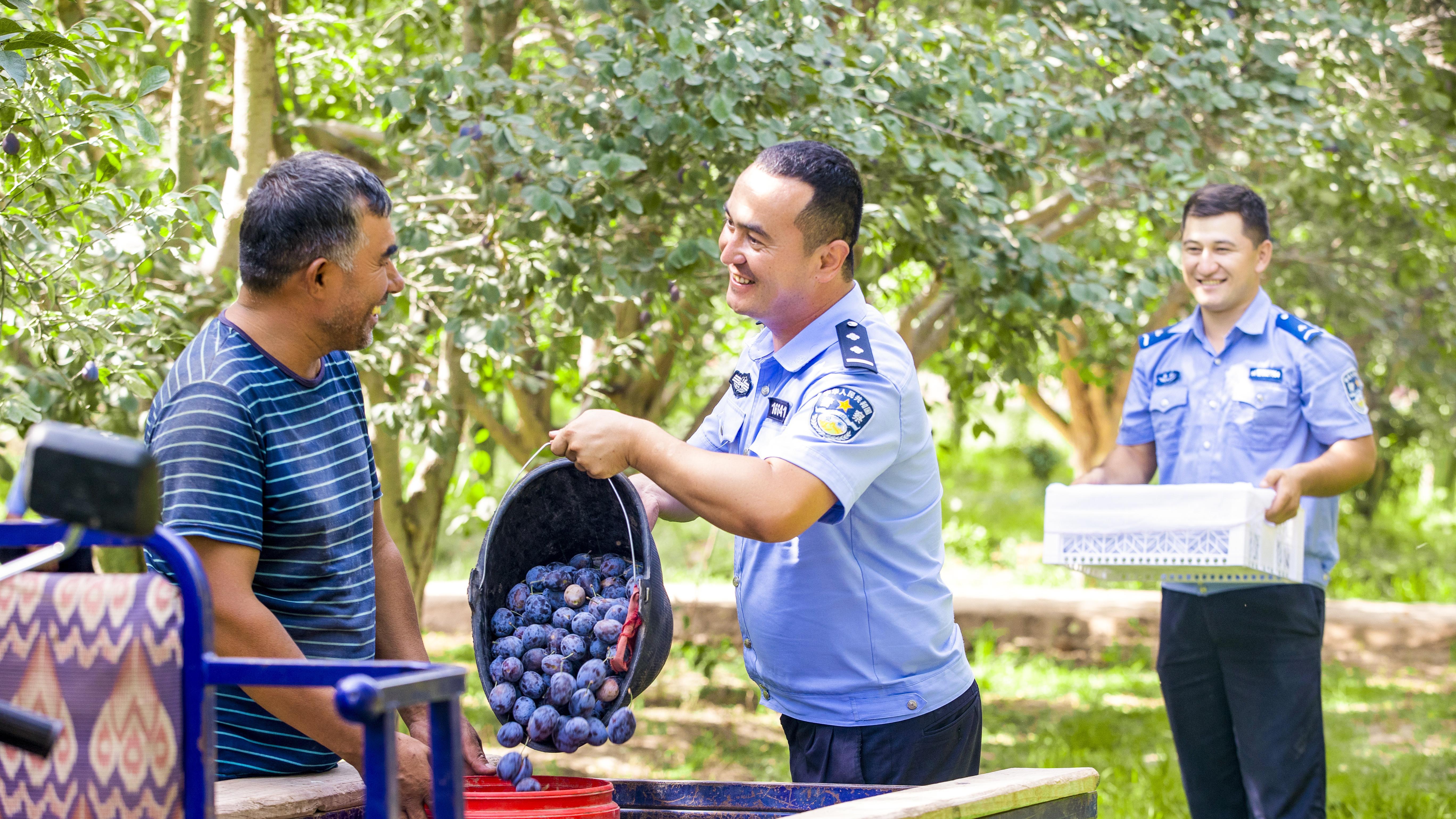 “新梅是百姓的‘甜蜜產(chǎn)業(yè)’,我們就做這份‘甜蜜’背后的守護(hù)者?!庇①I里鎮(zhèn)派出所所長(zhǎng)鐘永鋒的話,道出了伽師公安的工作宗旨。