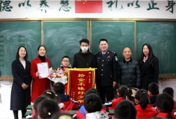 “拾金不昧好少年!”日前,四川資陽市雁江七小,失主吳先生和民警送來錦旗和《表揚(yáng)信》,希望學(xué)校公開表揚(yáng)該校四年級學(xué)生鐘一瑁,讓更多孩子向他學(xué)習(xí),一樣拾金不昧。