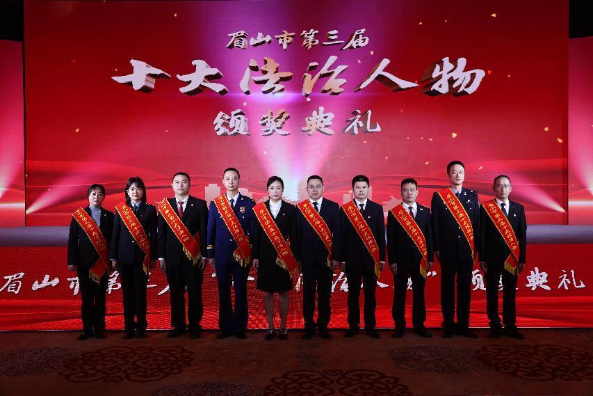 10月25日晚,四川省眉山市舉行第三屆“十大法治人物”頒獎典禮。中國法學會黨組成員、副會長,中國法學會法治文化研究會會長張?zhí)K軍,中國法學會法治研究所所長、中國法學會法治文化研究會常務(wù)副會長兼秘書長周占華,四川省委政法委副書記、省法學會黨組書記、常務(wù)副會長劉楠,眉山市委常委、政法委書記、市法學會會長楊軍,眉山市人大常委會副主任、市法學會副會長王澤文,眉山市政府副市長、市公安局局長、市法學會副會長李東武,眉山市政協(xié)副主席、市法學會副會長祝明洪等出席頒獎典禮。