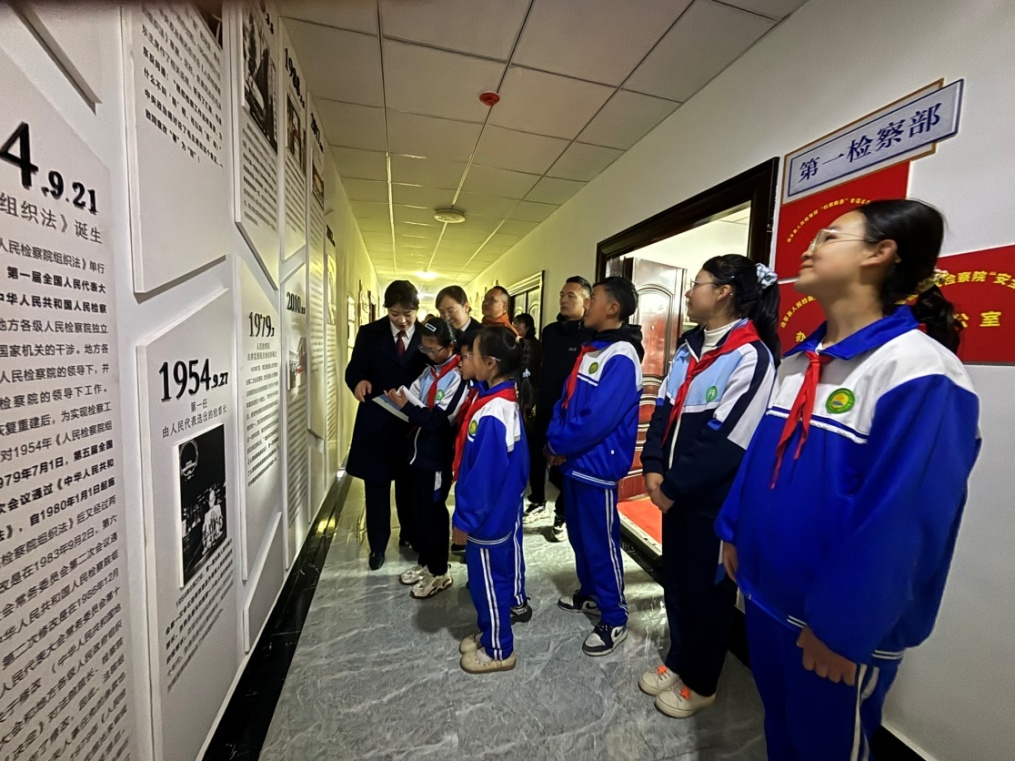 在該院辦公樓大廳,檢察官給受邀學(xué)生和家長講解了如何預(yù)防校園暴力違法犯罪行為,遇到后如何處理,可以向誰求助;什么是強制報告,告訴孩子發(fā)現(xiàn)未成年人受到侵害需要及時報告等,隨后又帶領(lǐng)大家依次參觀該院各個職能部門,讓孩子和家長朋友們更加深刻地了解到檢察院的職能職責,之后來到該院文化墻,參觀了該院的改革歷史,讓孩子們仔細地聆聽檢察官的介紹,穿梭在檢察院的發(fā)展歷史長廊中,了解該院從1978年的建院之初,到如今的風(fēng)雨兼程的歷程。最后,大家來到該院第一檢察部辦公室。檢察官給學(xué)生們講解了刑事案件從受理到審結(jié)的整個流程。參觀完畢,孩子們紛紛表示這次的實地參觀讓他們受益匪淺。