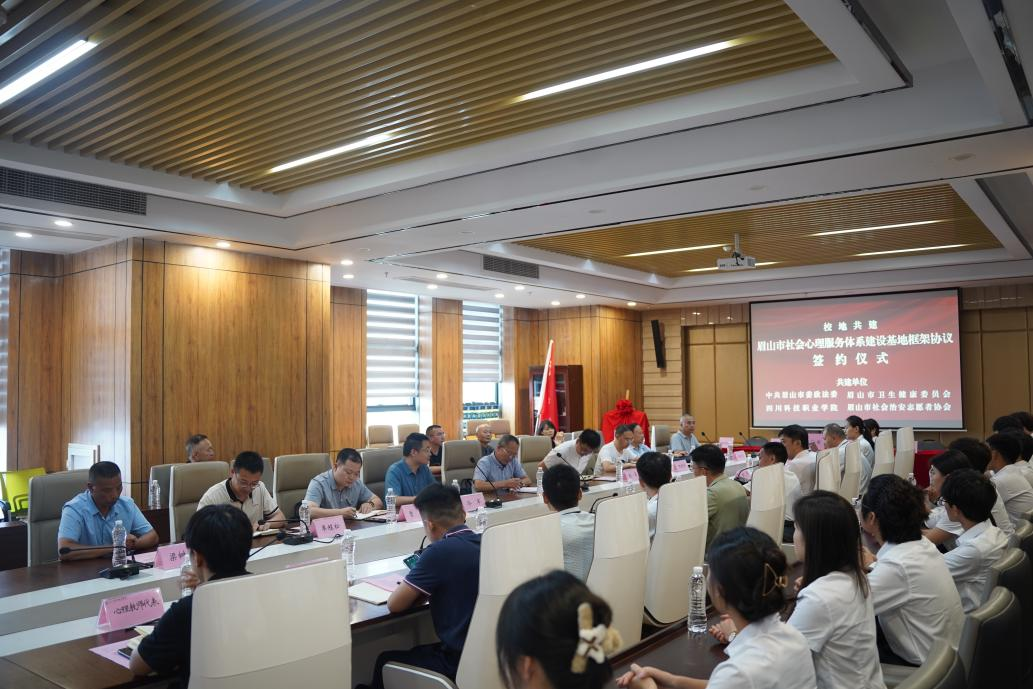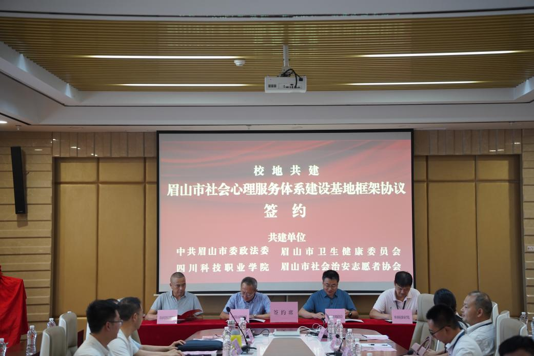 日前,四川省眉山市社會心理服務體系建設基地框架協(xié)議簽約儀式在四川科技職業(yè)學院舉行。眉山市委政法委副書記李樹明出席儀式并講話。
