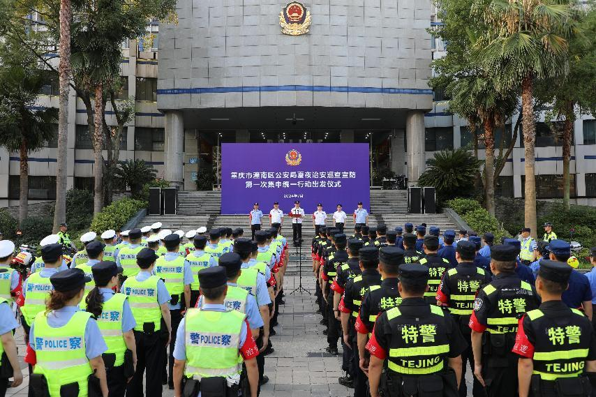厲兵秣馬,整裝待發(fā),全力以赴,守護當“夏”。7月6日晚,潼南區(qū)公安局指揮中心大樓前警燈閃爍、警徽熠熠,參勤民警和市場監(jiān)督管理局、城市管理局、消防救援局、文化執(zhí)法等部門工作人員整齊列隊、蓄勢待發(fā)。