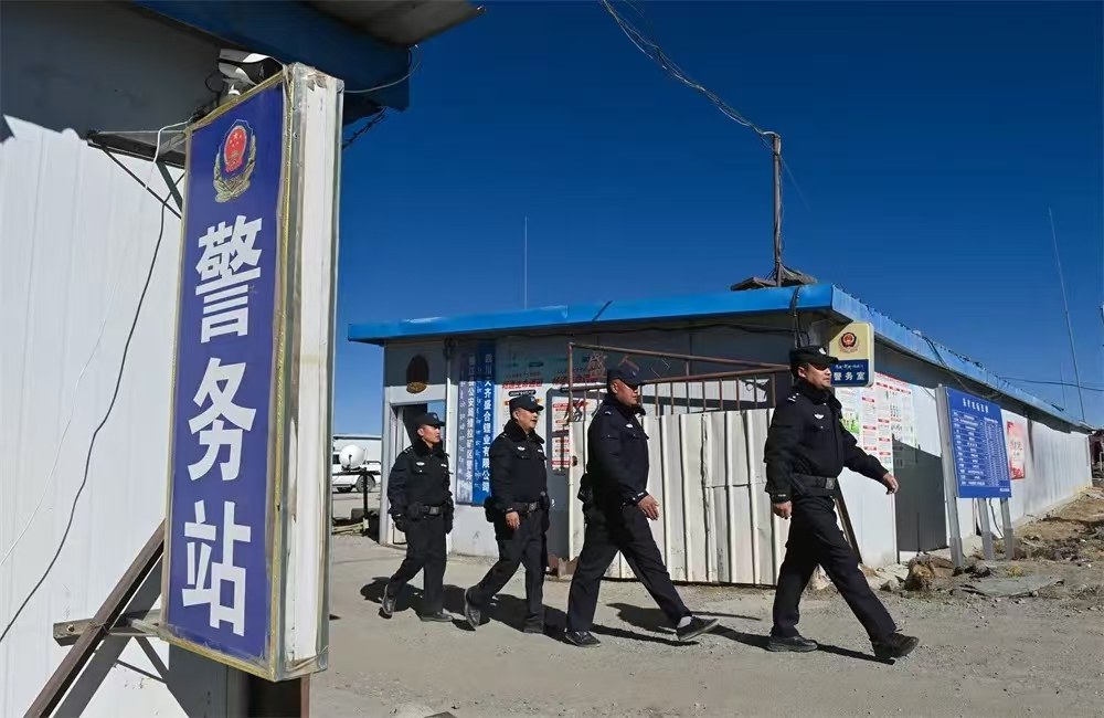 為了打造平安礦區(qū),雅江縣公安局主動(dòng)前移警務(wù),2020年,在海拔4540米的鋰礦勘探區(qū)域建成并投入運(yùn)行了瓦多派出所措拉礦山警務(wù)站,轄區(qū)覆蓋周邊的3個(gè)施工企業(yè)和1個(gè)村,常態(tài)化部署2名民警、4名輔警開展工作。警務(wù)站成立后,駐勤民輔警在礦區(qū)重點(diǎn)部位、治安形勢復(fù)雜區(qū)域、進(jìn)出山口要道等部位設(shè)立執(zhí)勤崗位。開展打擊盜竊、破壞工程設(shè)施,矛盾糾紛化解,利企便民服務(wù),法治宣傳等工作,及時(shí)處置各類警情、受理各類報(bào)警求助,擔(dān)負(fù)起了為企業(yè)開發(fā)建設(shè)護(hù)航的職責(zé)。