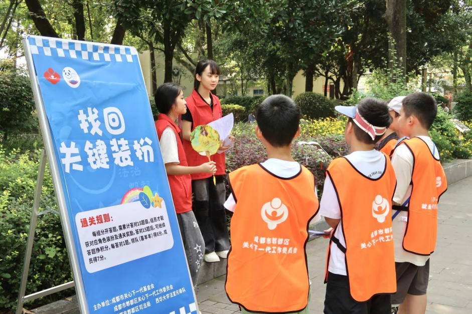 近日,由四川省成都市郫都區(qū)關(guān)工委、司法局、禁毒辦、西華大學(xué)聯(lián)合舉辦的法治研學(xué)夏令營正式拉開序幕。研學(xué)之旅以憲法為主題,設(shè)置法治漆扇、憲法拼圖、找回關(guān)鍵裝扮、解救村長四個關(guān)卡,吸引40余名小學(xué)生及家長參與,在大學(xué)生普法志愿者的帶領(lǐng)下不斷闖關(guān),玩游戲、學(xué)知識,讓法治的種子在每一個小學(xué)生的心中悄然生根。
