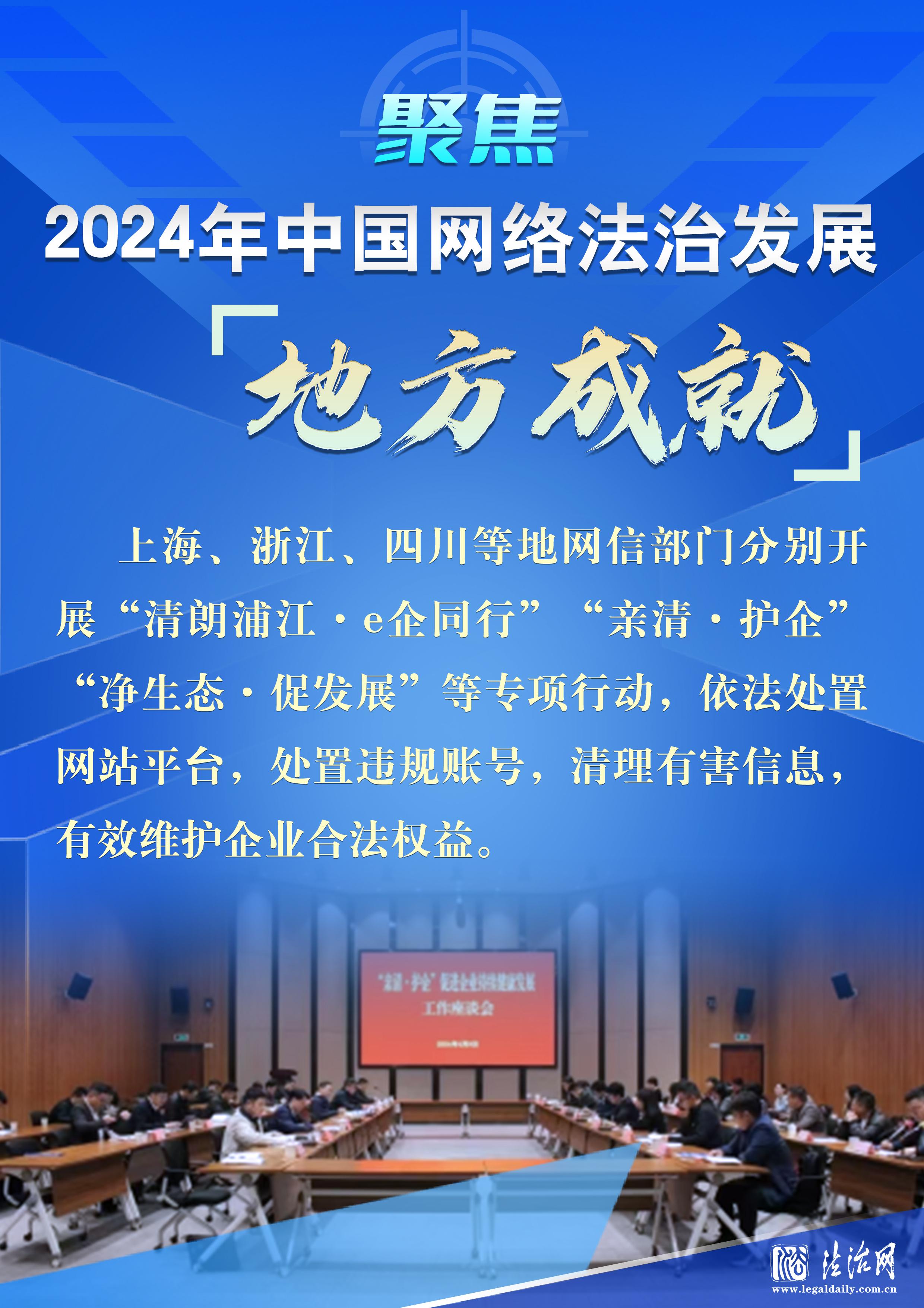 4月27日,國家互聯(lián)網(wǎng)信息辦公室發(fā)布《中國網(wǎng)絡(luò)法治發(fā)展報告(2024年)》。這是首部國家部門層面發(fā)布的網(wǎng)絡(luò)法治綜合性年度報告,既是《中國網(wǎng)絡(luò)法治三十年》報告的續(xù)篇,也是中國網(wǎng)絡(luò)法治發(fā)展年度報告的開篇。讓我們用一組海報帶你看我國網(wǎng)絡(luò)法治建設(shè)這一年的地方成就,感受全國各地網(wǎng)絡(luò)法治建設(shè)邁出的堅實步伐。