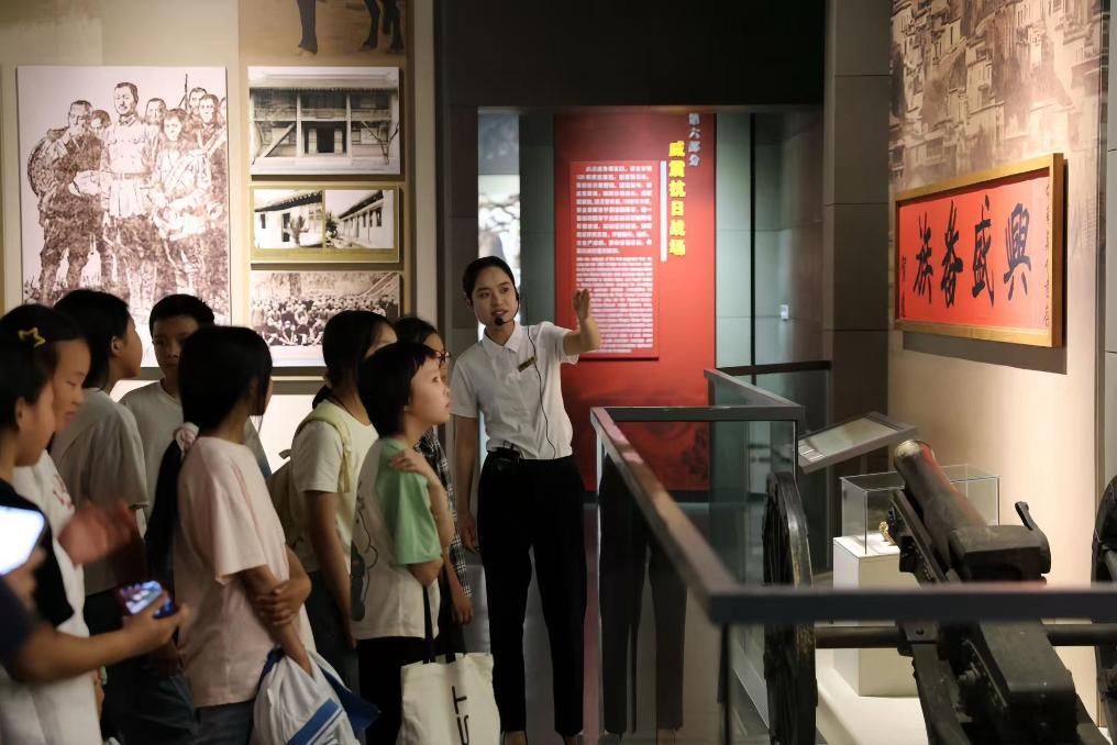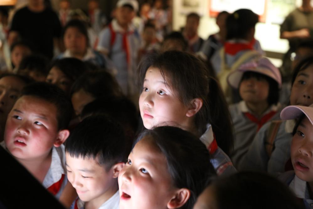 學(xué)生們在賀龍紀(jì)念館聽講解員講述紅色歷史。新華社發(fā)