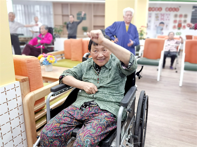 初夏的早晨,在重慶市九龍坡區(qū)謝家灣養(yǎng)老服務(wù)中心,老師正帶著老人做保健操。老人們隨著音樂節(jié)奏擺動(dòng)雙手、轉(zhuǎn)動(dòng)身體。