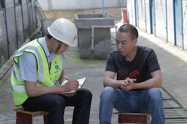 2020年5月,鄒彬與農(nóng)民工肖師傅交流。(代表供圖)