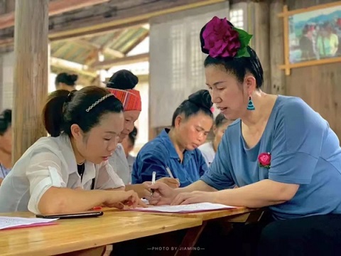 2013年,楊再美創(chuàng)立了臺江縣恒藝苗族文化藝術(shù)專業(yè)合作社,通過產(chǎn)品加工、“陽光計劃”、“蒲公英計劃”、“雨露計劃”、“錦繡計劃”、“非遺傳承”等培訓(xùn),傳承技藝,搭建橋梁,受益婦女達(dá)30000余人次,不僅精進(jìn)了繡娘的技藝,更多地給她們樹立了脫貧致富的信心。