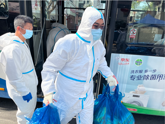 近日,上海市浦東新區(qū)啟用首批“公交送菜專線”,15輛公交車為沿線20個盒馬配送點運送民生物資,服務封控區(qū)內(nèi)上千戶居民。一個來回,公交車能裝載300份蔬菜包,運送能力是一般電瓶車和平板車的20倍。
