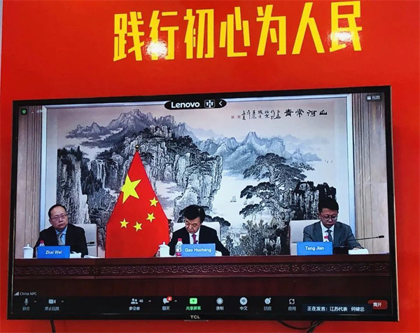 4月27日下午4點(diǎn),在全國(guó)人大與非洲法語(yǔ)國(guó)家議會(huì)線上研討會(huì)上,來(lái)自泰州的何健忠代表,在他工作的泰興市江平路郵政支局營(yíng)業(yè)廳通過(guò)視頻連線,圍繞代表(議員)如何反映人民心聲這一議題,與非洲的喀麥隆、中非、科摩羅、吉布提、加蓬、尼日爾、塞內(nèi)加爾等國(guó)家的多名議員代表進(jìn)行線上交流。作為與會(huì)的全國(guó)三名基層代表中的一員,何健忠首次向世界講述了他的代表故事和履職感悟。