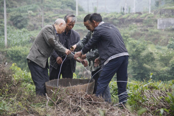 峰巖村是典型的喀斯特地貌,尤其缺水。遇到長時間不下雨,全村人就得整夜排隊,“攢天河水”“舀溝溝水”......2008年,剛剛擔任峰巖村黨支部書記的張濟平首先面對的困難就是村民們缺水,他心急如焚,暗自下定決心拼命也要幫助村民找到水源。他和村里幾位黨員成立了“找水敢死隊”,怕攀崖探洞出意外,大家甚至都立下了生死狀。2個多月的時間里,他率領大家踏遍周邊15平方公里山脊溝壑,帶頭下探神秘莫測、無人敢進的“槐樹天坑”,終于發(fā)現(xiàn)清冽甘甜的泉水,并抽送到全體村民家中。