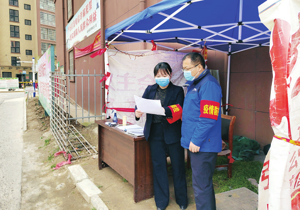 忽永婷 (左) 在社區(qū)疫情防控點(diǎn)執(zhí)勤。