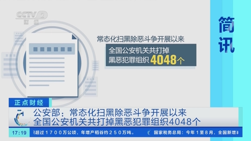 公安部:常態(tài)化掃黑除惡斗爭開展以來 全國公安機關(guān)共打掉黑惡犯罪組織4048個