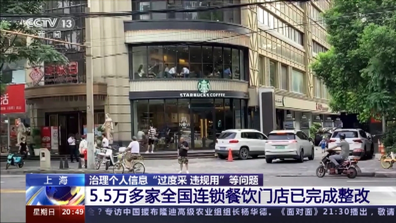 上海 治理個人信息“過度采 違規(guī)用”等問題 5.5萬多家全國連鎖餐飲門店已完成整改