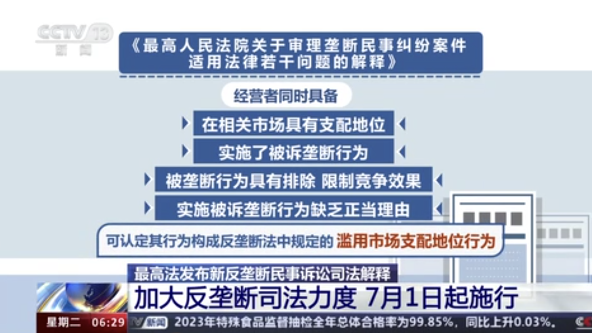 最高法發(fā)布新反壟斷民事訴訟司法解釋 加大反壟斷司法力度 7月1日起施行