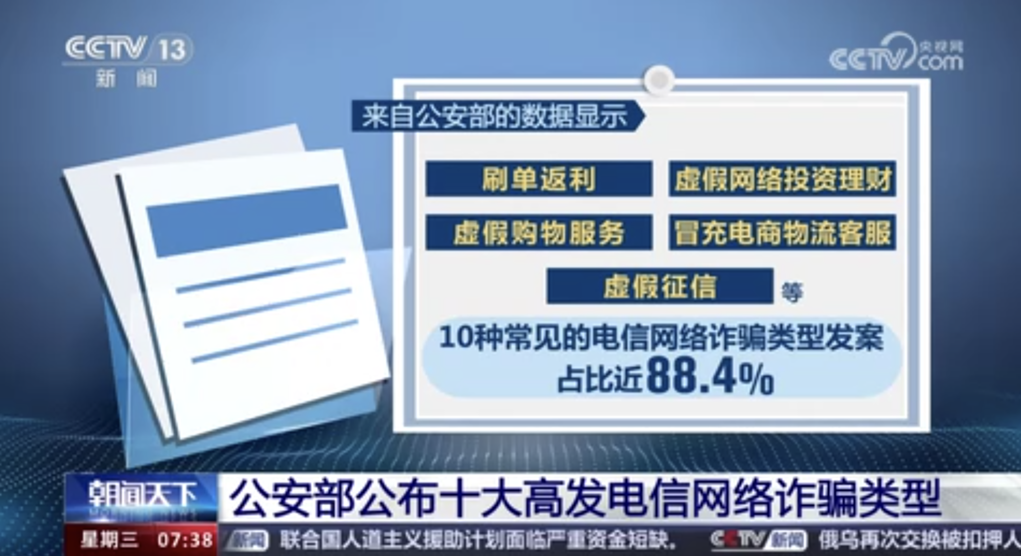 公安部公布十大高發(fā)電信網絡詐騙類型