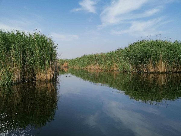 萬(wàn)頃碧水,葦曳如波。