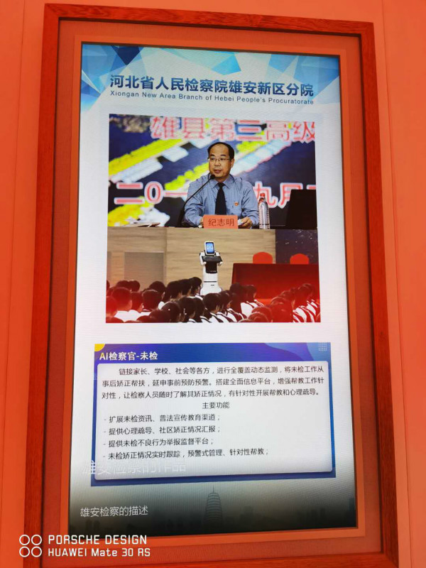 楊靜介紹說,雄安新區(qū)檢察機(jī)關(guān)積極探索高科技在司法辦案中的應(yīng)用,特別是在疫情防控期間探索了零接觸辦案,有效提升了高科技在日常辦案中的輔助作用。同時,打造辦公用品智能領(lǐng)用中心、智能圖書柜,高標(biāo)準(zhǔn)改造升級24小時12309檢察服務(wù)中心,構(gòu)建受理案件、信訪接待、法律咨詢等一體化智能檢察服務(wù)平臺,為人民群眾提供優(yōu)質(zhì)、高效、及時的法律服務(wù)。